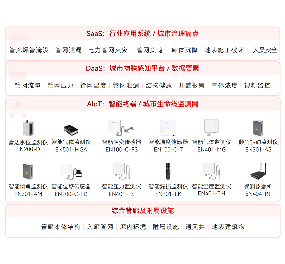 WITBEE?萬賓?是中國(guó)首批城市生命線智能監(jiān)測(cè)儀器和大數(shù)據(jù)服務(wù)提供商,提供智能監(jiān)測(cè)儀器、智能基站、云端平臺(tái)等智能物聯(lián)網(wǎng)技術(shù)與產(chǎn)品線,賦能城市排水、供水、燃?xì)狻⒐帷蛄骸⒔ㄖ⑺淼馈⒕C合管廊、河湖等城市基礎(chǔ)設(shè)施生命線監(jiān)測(cè)感知網(wǎng)絡(luò)化建設(shè)和智能化管理,對(duì)接城市運(yùn)行管理服務(wù)平臺(tái),支撐城市運(yùn)行“一網(wǎng)統(tǒng)管”,提升城市生命線運(yùn)行效率和安全,提高城市精細(xì)化治理能力。